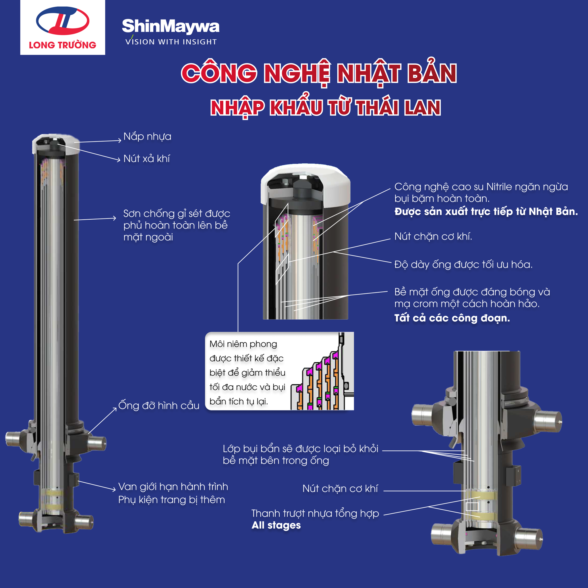 Hệ thống thủy lực hiện đại, chống rò rỉ dầu, hoạt động êm ái và bền bỉ.